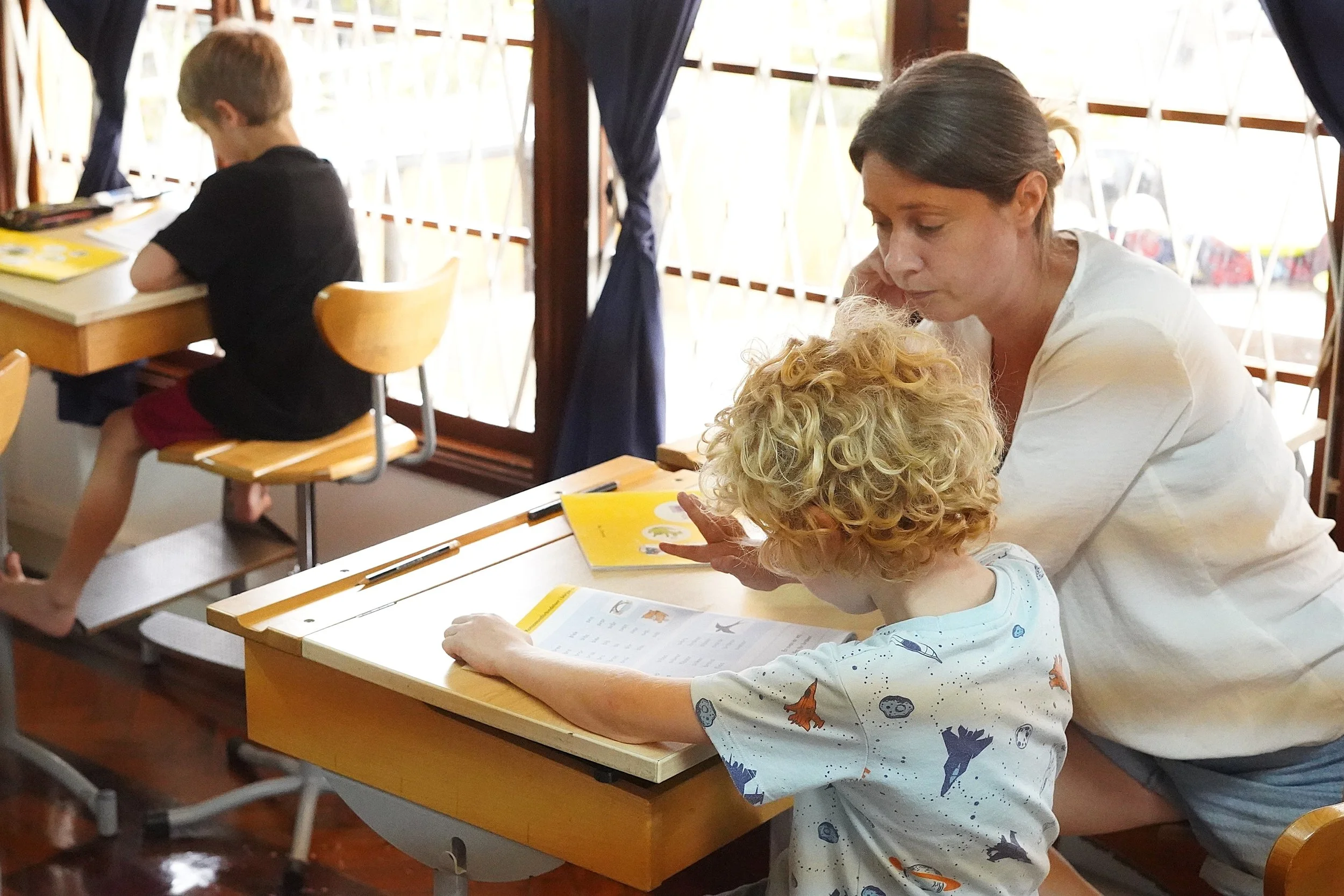 Our youngest students in ‘preschool class’ experience a structured but less demanding introductory year, to ease into the responsibilities of going to school. As kids grow and progress, expectations gradually increase. Older students take on deeper projects, longer study blocks and help guide their junior friends.